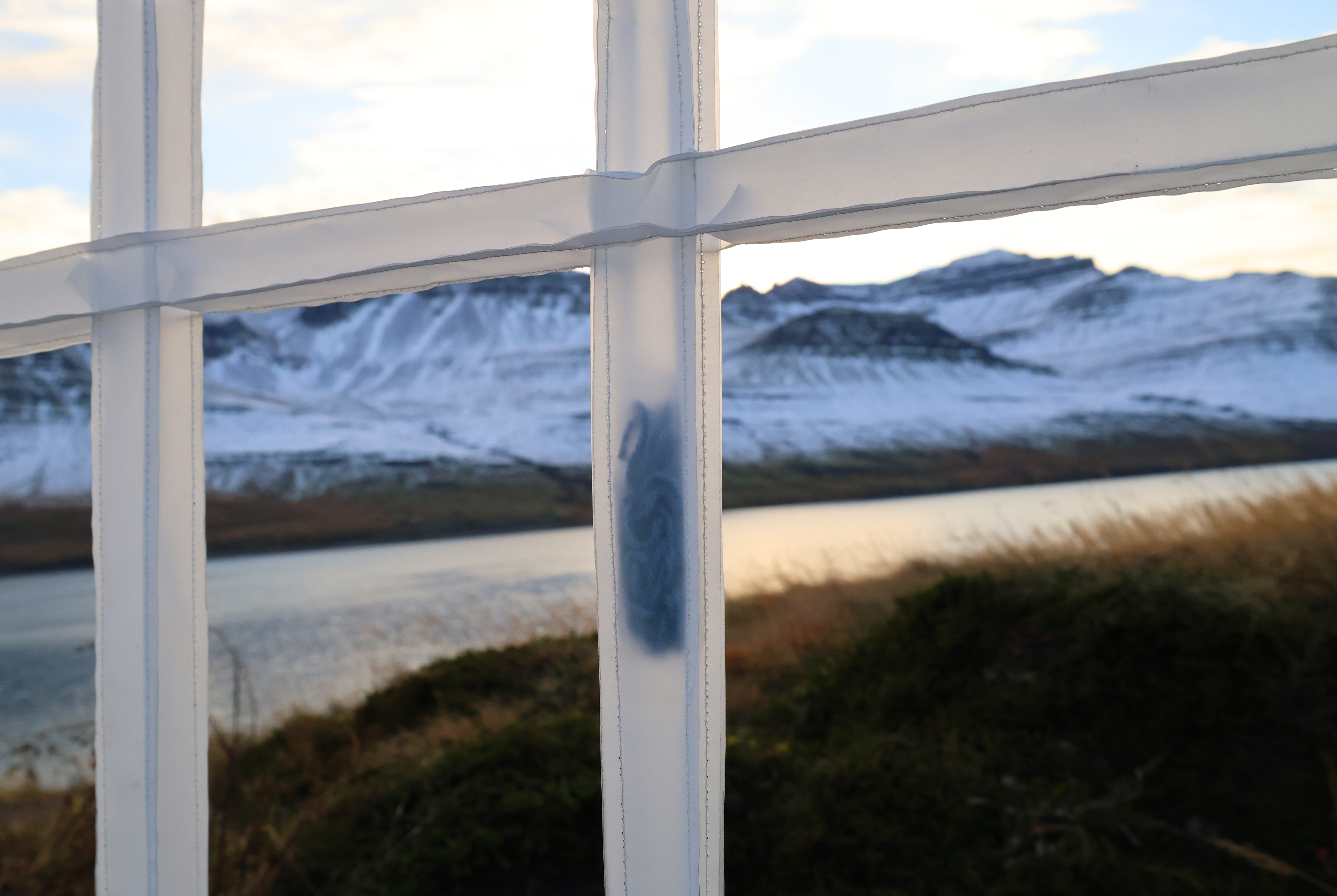 The sounds of the tracing paper being cut, sewn, and built into the sculpture became a soundtrack to my time at the fish factory, merging with the waves crashing into the fjord and the wind carving a patch between the mountains.