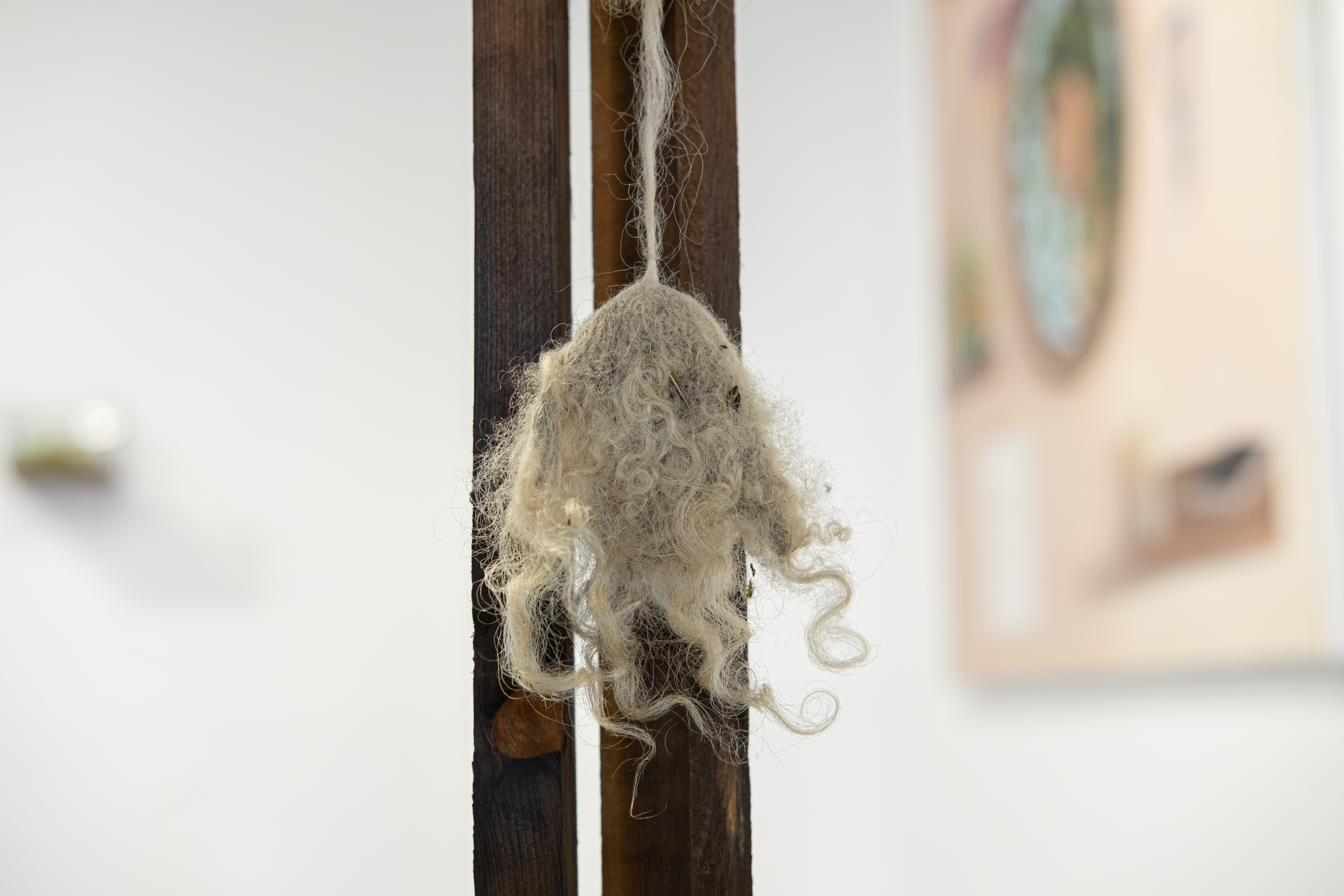 It is the simple phrase that can be found carved into the wooden fence running through the exhibition space. It suggests a scene without any shade. No shadow or silhouette that follows our movements on the ground and walls around us. It portrays a world that is unbound from reality. Where we are fully disconnected from our surroundings. No shadow in between Me and Us.